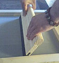 Se coloca la trama sobre la plantilla y se pasa una esponja humedecida para que la película se adhiera a la trama.