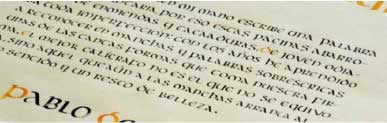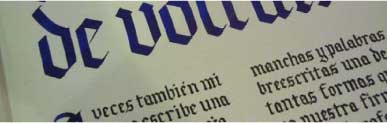Apropiación del recurso caligráfico permitiendo la comprensión del comportamiento del trazo gradual, la forma subyacente y la construcción del ductus de cada tipo de escritura. Los diferentes bloques de texto permiten la asociación entre el color de los signos y las relaciones espaciales que determinan el color del bloque.