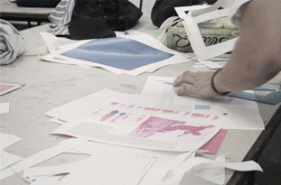 P03. Sensibilización a la forma y al color tipográficos. Peso homogéneo y compensación del peso óptico. Los alumnos en el taller, esquicio, colgada y correcciones generales. Fotos: Iara Kremer.