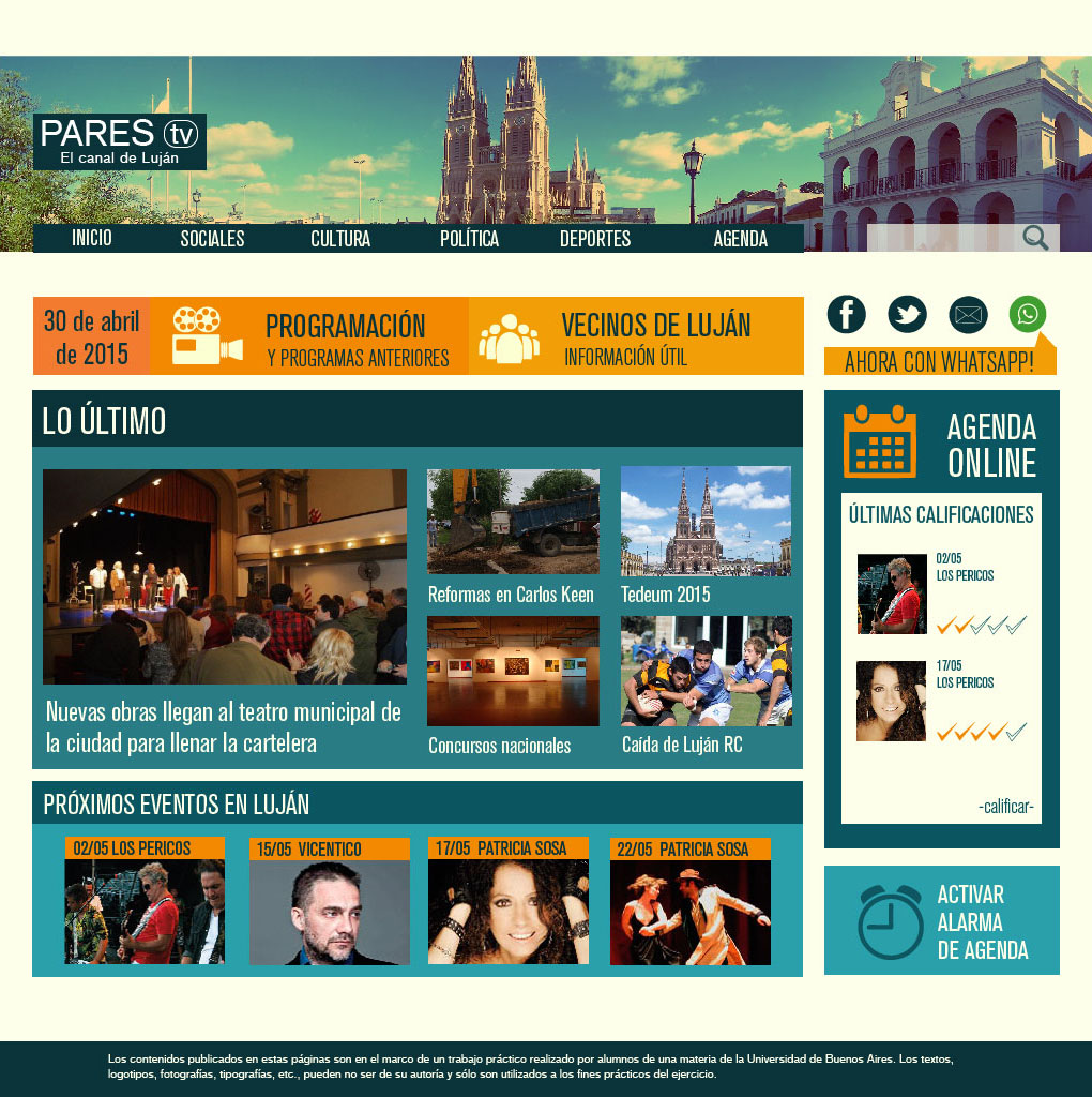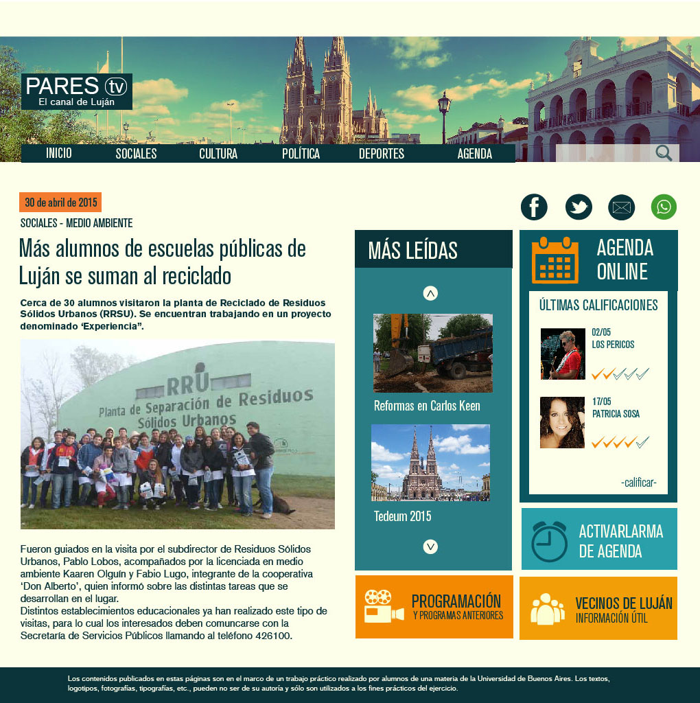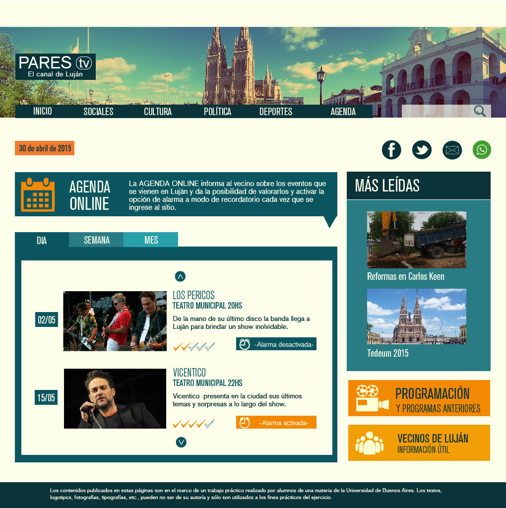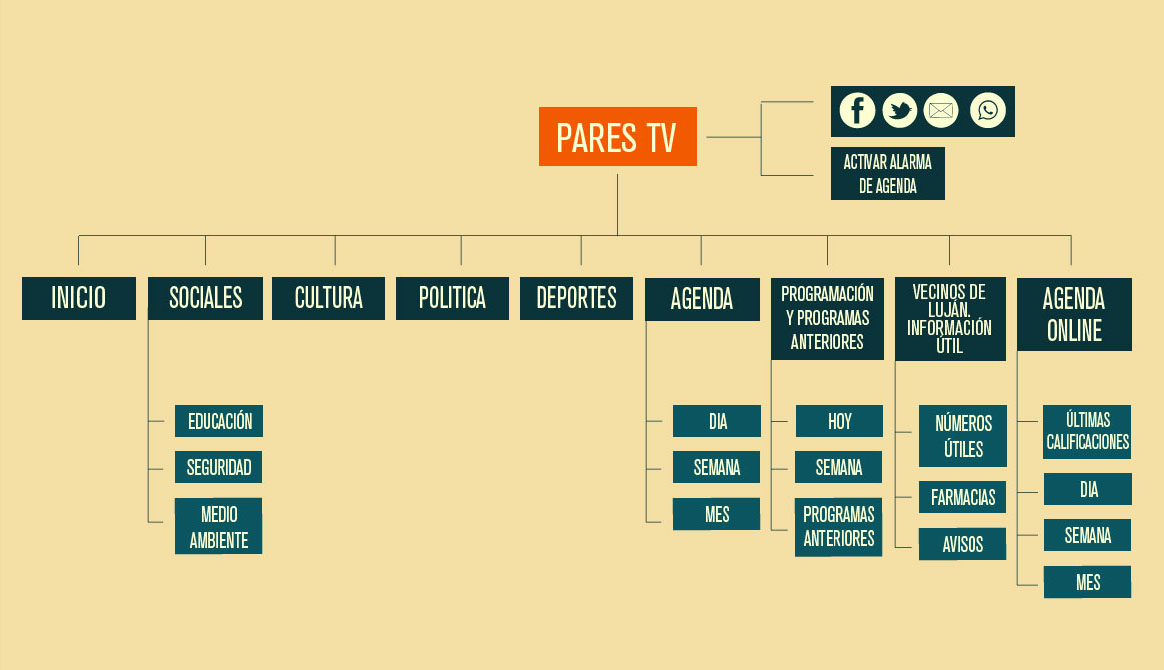 La confección del mapa de sitio toma los tópicos considerados más relevantes de la información local, la cual estará acompañada de noticias de nivel nacional. Se asignará una sección dentro de la botonera y dos enlaces dentro del cuerpo del index destinado a la agenda, sección de mayor protagonismo dentro del sitio.