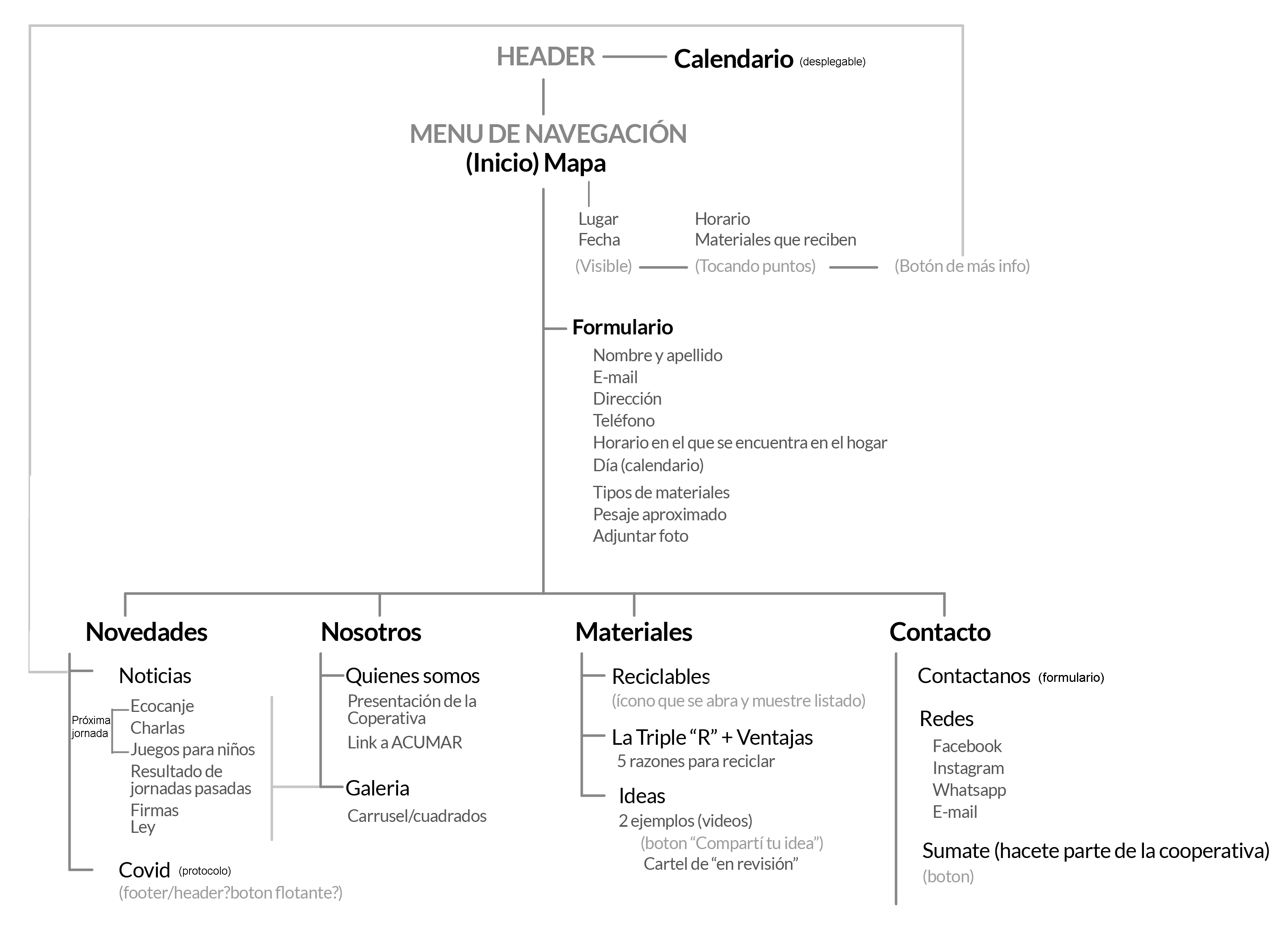 Mapa de contenidos de la Webapp