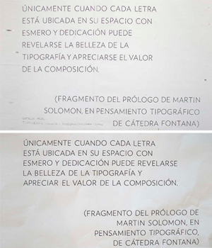 >> Descripción: La sensibilidad desarrollada en los trabajos anteriores permite el control de los espacios propios de la familia tipográfica utilizada y controlar el color resultante.
