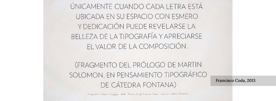 A partir de la composición de un bloque de texto letras mayúsculas recortadas se practica el reconocimiento de los espacios óptimos para lograr la homogeneidad en un bloque de texto relativamente corto, teniendo en cuenta las contraformas propias y compartidas.