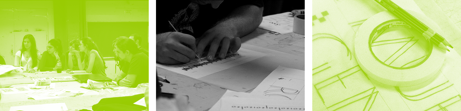 Generalmente, se pide a todos los alumnos que lleven diferentes materiales a la clase, según el trabajo práctico sobre el que se esté laburando en ese momento, para que puedan trabajar en el taller obteniendo la mirada crítica de sus compañeros así como la de sus
