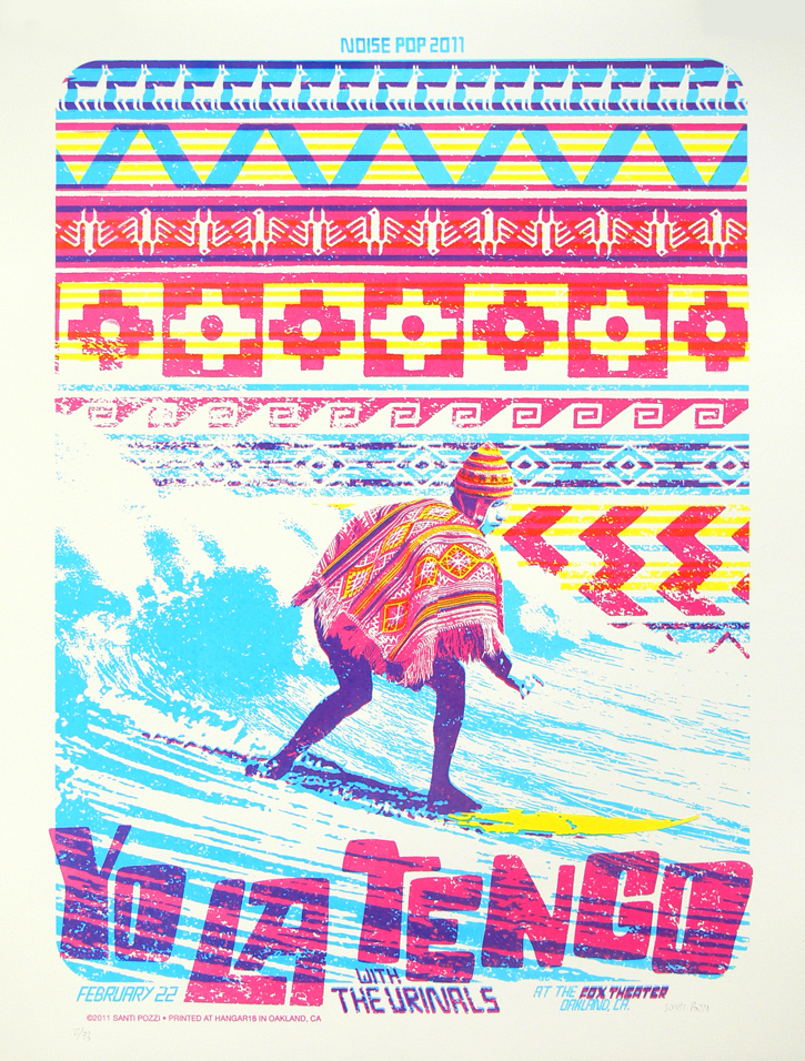 Santiago Pozzi (18/06/1986) es un estudiante de la carrera de diseno grafico en FADU, que se dedico en paralelo a la creacion de poster. Mejoro su tecnica luego de una pasantia con Chuck Sperry en California hace unos anos y, actualmente, se sigue dedicando a esto.