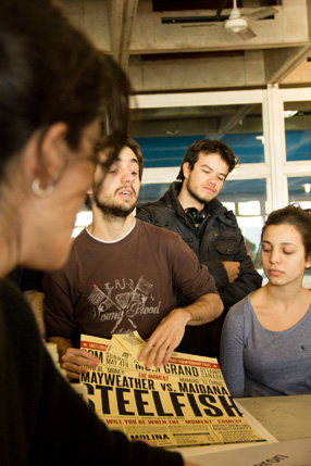 ► Aproximación a la investigación descriptiva: la tipografía y la música a través de la historia Con el principal bjetivo de promover el desarrollo de actitudes y habilidades relacionadas con las tareas de investigación, promover el análisis de la tipografía dentro de su contexto histórico y relacionar la tipografía con otras expresiones formales, se asigna a cada alumno un período de 10 años, dentro del cual deben elegir un género musical. Los alumnos realizan una recolección del material gráfico vinculado a la música de dicho período y lo analizan —apoyados por una guía de interrogantes— tratando de establecer líneas de referencia entre el género musical, la tipografía y las piezas analizadas desde una perspectiva histórico-tecnológica. El resultado de este estudio se expone en las comisiones, con el apoyo de un póster que sintetiza en forma de diagrama las principales relaciones encontradas.